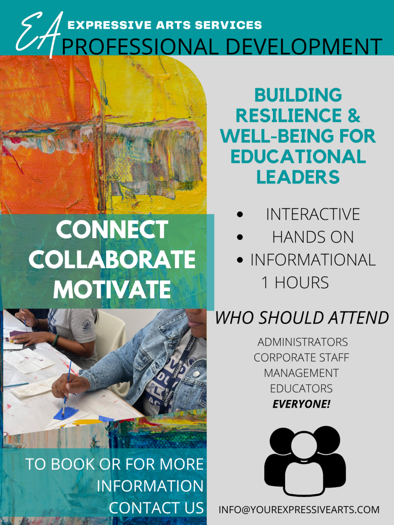 A dynamic, hands-on workshop designed to help school administrators and educational professionals manage stress, enhance emotional resilience, and integrate wellness into their daily routines. Through guided expressive arts activities, participants will explore creative strategies for self-care, mindfulness, and sustainable leadership practices.